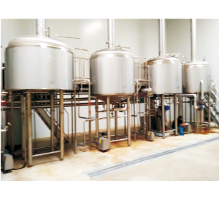 精釀啤酒實(shí)驗(yàn)設(shè)備包括機(jī)架和安裝在機(jī)架上的冰水罐、糖化罐、發(fā)酵罐和冷卻系統(tǒng);產(chǎn)品的冰水罐有冰水內(nèi)罐和冰水外罐,冰水內(nèi)罐和冰水外罐之間安裝有水處理裝置;產(chǎn)品的冰水內(nèi)罐和糖化罐之間、糖化罐和發(fā)酵罐以管道相連,管道上安裝有閥門、流量計(jì)和麥汁泵;產(chǎn)品的糖化罐和發(fā)酵罐中安裝有攪拌機(jī)、加熱機(jī)構(gòu)、溫度傳感器和冷卻機(jī)構(gòu),產(chǎn)品的發(fā)酵罐上還有觀察窗、出酒口、壓力表、壓力調(diào)節(jié)表和試酒口;產(chǎn)品的冷卻系統(tǒng)包括制冷機(jī)組、冰水泵、三通閥門、流量計(jì)、水壓表、安裝于糖化罐和發(fā)酵罐中的降溫盤管。精釀啤酒實(shí)驗(yàn)設(shè)備適用于各種精釀啤酒配方的實(shí)驗(yàn)和開發(fā),成本小,功能齊全。