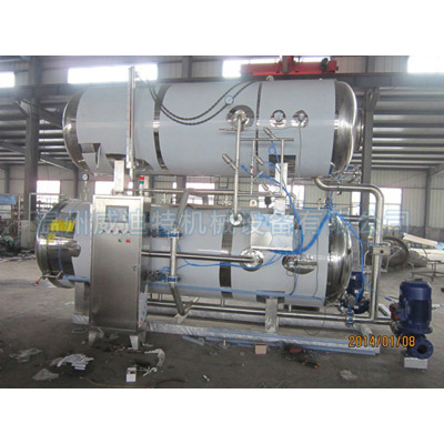 利用鍋內轉換的熱水循環,浸泡式殺菌,在工作過程中,對鍋內溫度壓力、殺菌時間、進汽、排汔、進水、排水等過程。