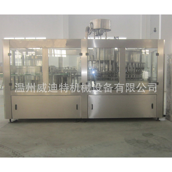 蘇打水三合一灌裝生產線特點:旋轉式常壓灌裝,設定灌裝容量后,設備自動定量灌裝,液位控制精準,保證了灌裝速度也確保產品的品質要求,同時,達到避免浪費成品水等效果。